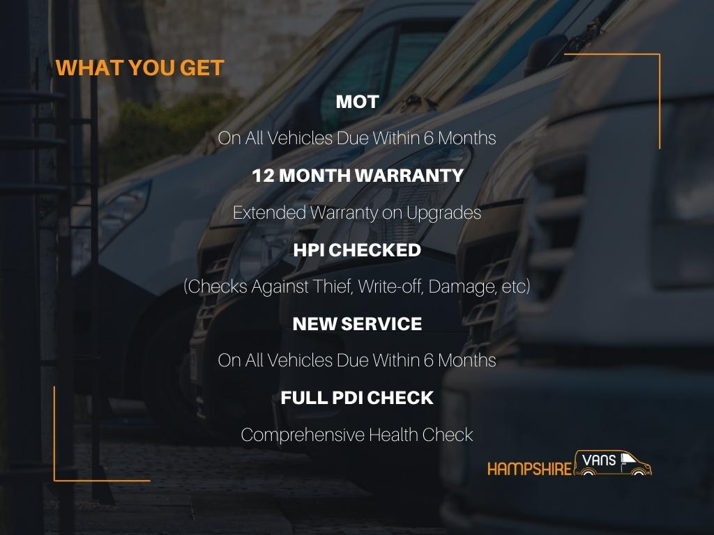 We take pride in our high standards at Hampshire Vans. Each van undergoes a 60-point pre-delivery inspection performed by specialist mechanics, followed by comprehensive preparation at two separate garages. Our vans are fully serviced and detailed, meeting high quality standards to ensure your peace of mind.